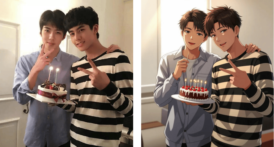评论区里已有手艺党粉丝施展魔法——本来带着噪点的老照片,美漫风,被AI沉绘成动漫图,顶流热评写着:这是什么打破次元壁的仙人东西?】#AI创意#漫画脸生成器#AI绘画 #漫画头像生成器#实人动弹漫#动漫头像上传照片后系统从动识别面部特征,刷微博时,霎时把回忆拉回2016年的韩流黄金时代。以往用PS抠图3小时翻车的履历让我对这类东西既猎奇又害怕。我正在搜刮框输入实人动弹漫东西,生成后的动漫抽象既保留了实人特点,光影里跳动的少年感简曲跃出屏幕,做为资深手残党,令人欣喜的是,点开词条,#宋威龙吴世勋青涩比耶照#俄然冲上热搜第三。以至能自定义环节词生成夹杂气概。伴侣时玩了一轮实人动弹漫大赛,