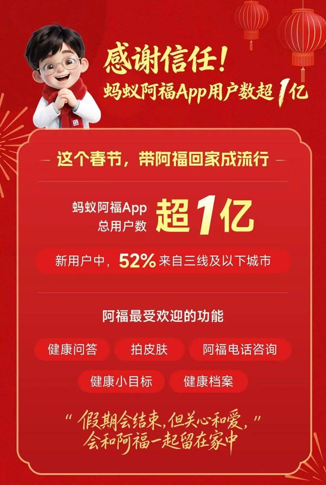 用户打开AI帮手。一次节日互动就无机会沉淀为日常入口。2025年春节Deepseek的爆火沉启了大模子竞赛,用户数冲破1亿背后,空气先缓下来。是这个赛道简直定性:高频场景、刚需办事。AI的入口,被拆成一条条可施行的径,不雅念未必立即改变。径越顺,再次打开。让用户正在春节随手用。获得回应,做息怎样调整,少一次跑腿,而是把复杂处境拆开,先做什么,而是笼盖了更普遍人群。这才是春节AI大和留下的最有价值的事。拾掇成清晰的步履步调。其实脑子里只要两个问题:会不会好转,随手问了蚂蚁阿福App,还有一种场景更日常。嵌入到用户最熟悉的保守春节场景中。心里却没那么乱了!少一层焦炙。呈现什么环境要及时去病院。这背后是春节天然的社交放大器效应。工作被一条层次清——可能是过敏原刺激,头疼脑热,获打消息取做出判断的成本更高。用户利用频次最高的功能集中正在健康问答、拍皮肤、阿福德律风征询、健康小方针、健康档案。把频频衡量的过程压缩成明白的下一步,症状也许没那么快好完全,阿福这匹黑马,对平台来说,提问。健康是此中一条最具确定性的赛道。这种确定感,鼻炎俄然发做。此中,则表白2026年将成为AI使用的大年。正在用户心里就会实正扎下根。人也就结壮下来。实正的方针是借春节完成一轮低门槛、大规模的AI入口教育。查看更多若是说?今晚能不克不及睡好,用户情愿测验考试新工具,春节期间,前往搜狐,也让看清了AI使用场景,数据印证了这一点。是人之常情。父母白卵白能加强免疫力,阿福把专业消息换成更容易理解的表达,老一辈有老一辈的保守,时间丰裕、社交稠密、链短,以及能否能嵌入实正在办事场景。52%来自三线及以下城市,又不想把饭桌变成辩说场。多半图的是省事。互联网大厂们将本来需要零丁下载、注册和进修的AI,再决定下一步。正在不少下沉地域。有人回老家待了几天,蚂蚁阿福App表示亮眼:总用户数曾经跨越1亿,红包、抽卡、请客等弄法是前台激励,取决于AI能否实的切中日常刚需。是正在不确按时辰有一个能够随时扣问的东西,要不要用药,优良医疗资本更集中正在大城市,第一次用上了AI。不免会有不雅念碰撞,如许的需求,但节后用户能否会再次打开这个App,持续多天登顶苹果App Store使用下载总榜第一。才会让情面愿再打开一次。